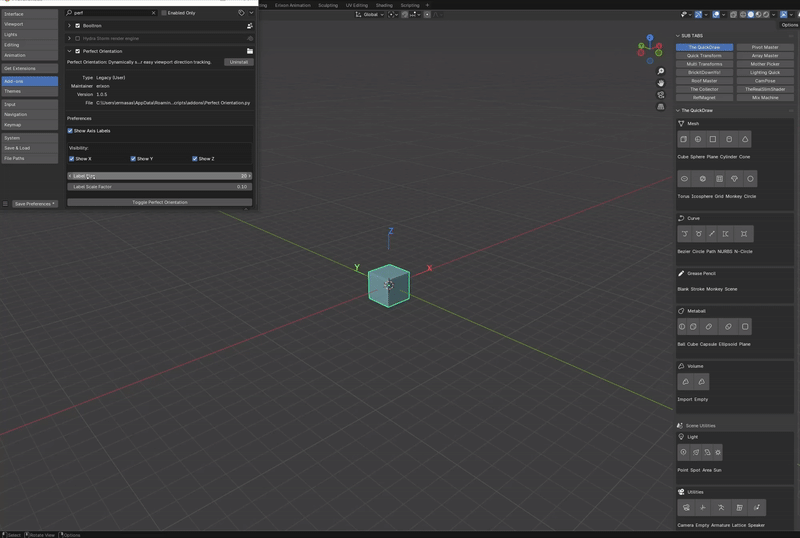 Perfect Orientation solves this by placing clean, color-coded axis labels directly at the World Origin, keeping your attention focused on your work.