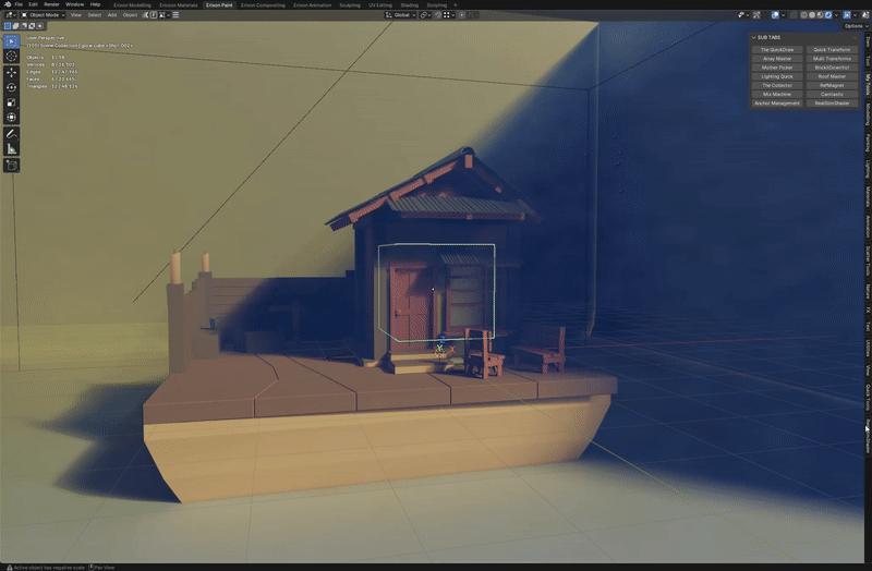 Fast Glow Effects: Quickly apply a dedicated Emitter Material to selected objects, with easy controls for Color and Emission Strength (perfect for neon signs or stylized light sources)
